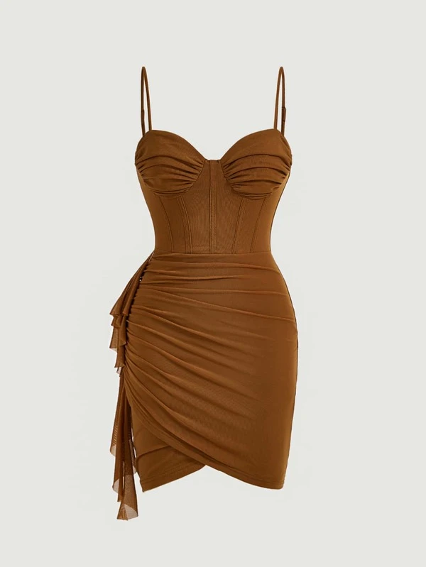 SHEIN ICON Ruched Wrap Hem Cami Dress