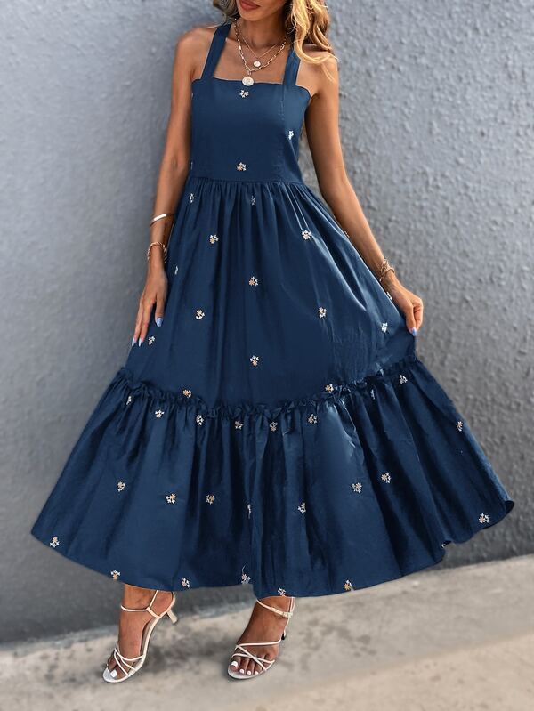 SHEIN Unity Ruffle Hem Floral Embroidery Cami Dress