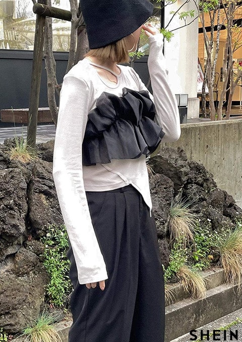 SHEIN ICON Ruffle Hem Organza Tube Top