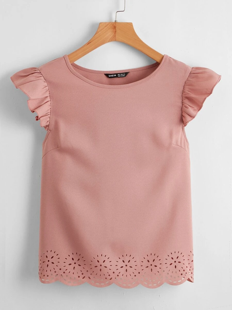 SHEIN Clasi Ruffle Trim Laser Cut Top