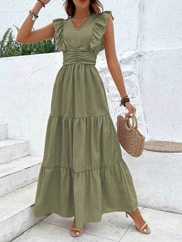SHEIN VCAY Ruffle Trim Ruched Ruffle Hem Dress