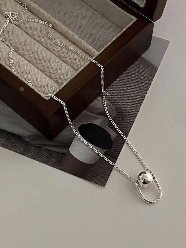 S925 Sterling Silver Beaded Necklace For Women With U-Shaped Pendant, Unique Design, Korean Style, Simple & Luxurious, Clavicle Chain