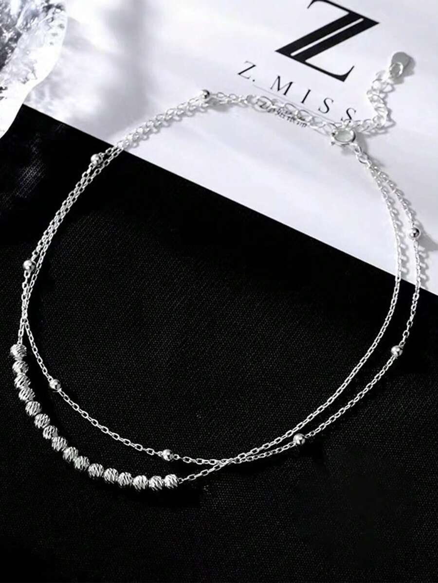 S925 Sterling Silver Double Layer Rotating Bead Anklet Bracelet Girl Fashion Personality Feet Chain For Women Girls Beach Jewelry