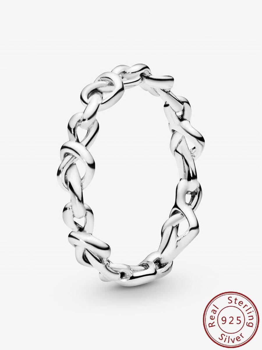 S925 Sterling Silver Intertwined Heart Shaped Ring, Simple & Elegant, Suitable For Couples And Ladies, Perfect For Parties