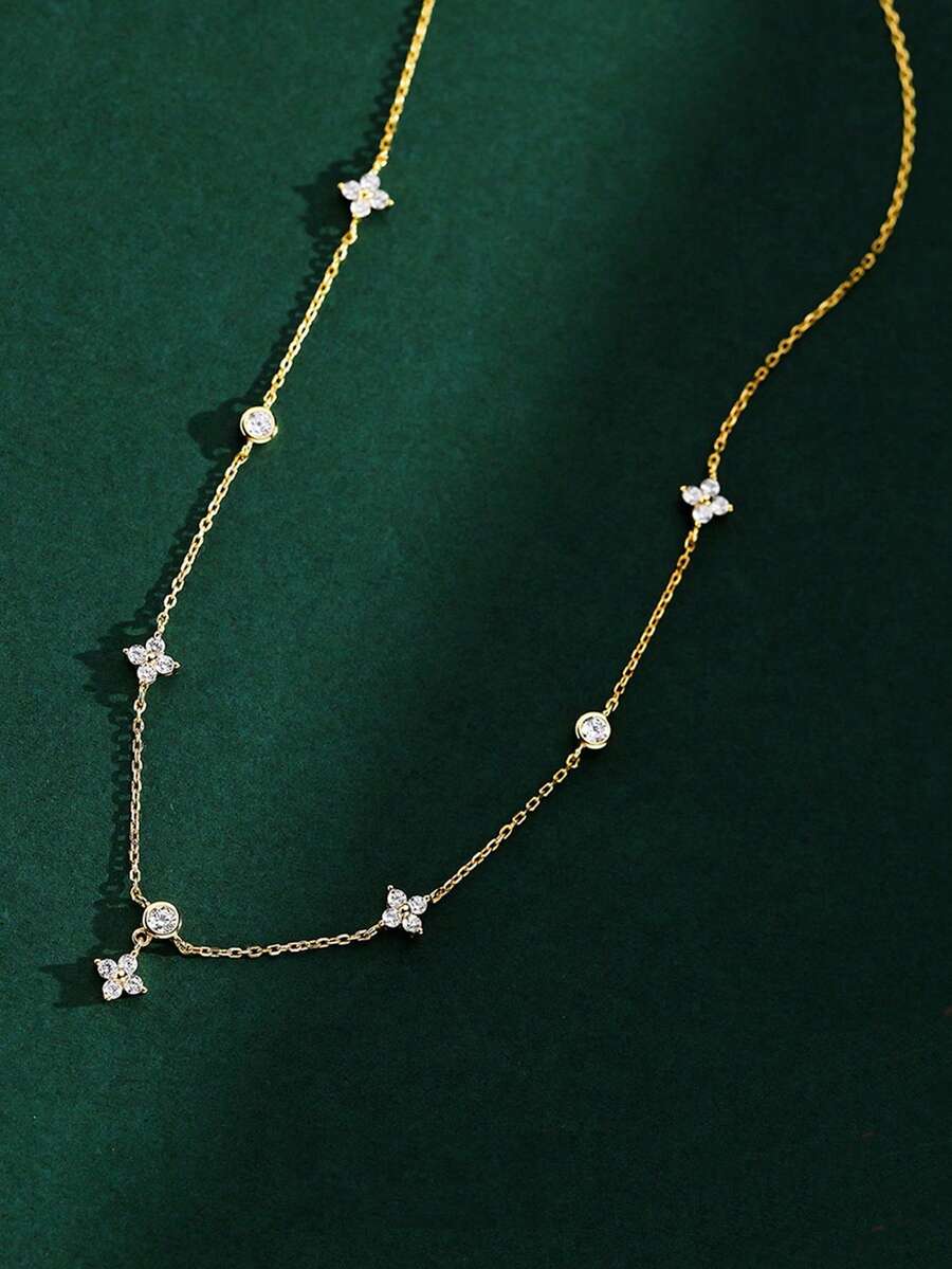 S925 Sterling Silver Necklace With Fashionable Flower Pendant, Elegant Clavicle Chain For Women