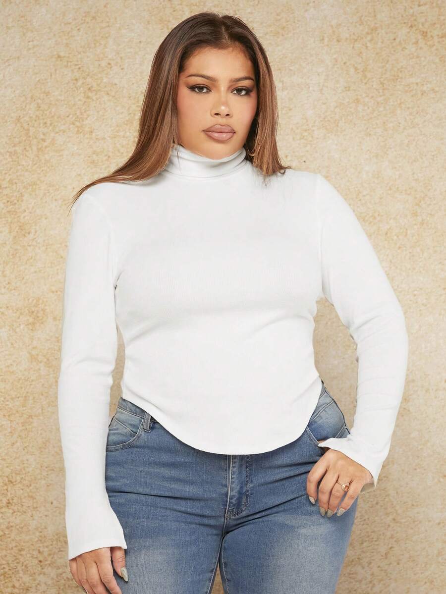 SHEIN SXY SHEIN SXY Plus Size Women'S Slim Fit High Neck Curved Bottom T-Shirt New Years Warm Top Christmas Outfits