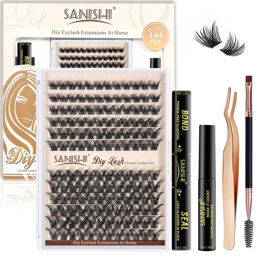 Sanishi Diy Eyelash Grafting Set, Includes 144 Eyelash Clips, Eyelash Glue And Sealer, Eyelash Brush Cluster, Eyelash Glue Remover, Eyelash Applicator, And Eyelash Brush, Used For Diy Eyelash Grafting (natural Style)