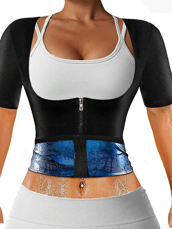 Sauna Suit For Women With Zipper , Waist Trainer, Workout Sweatband, Waist Trimmer, Yoga Suit