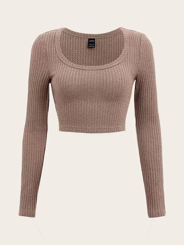SHEIN EZwear Scoop Neck Rib-knit Crop Tee