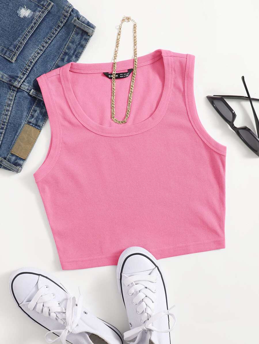 SHEIN EZwear Scoop Neck Solid Tank Top