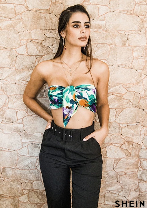 SHEIN Privé Self Tie Cropped Tailored Pants