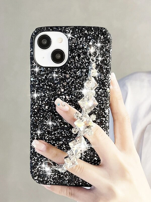 Sequin Decor Phone Case With Hand Strap