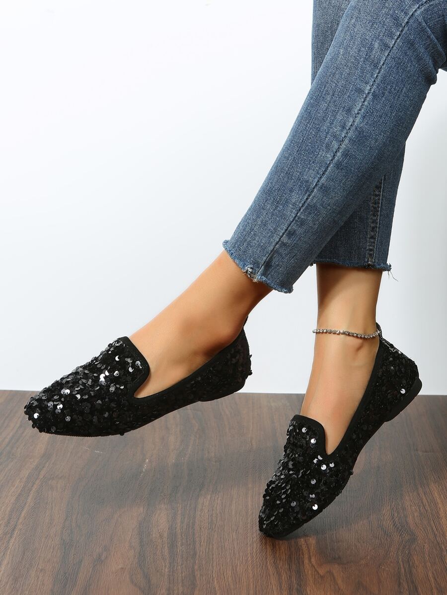 Sequin Decor Square Toe Suedette Loafers