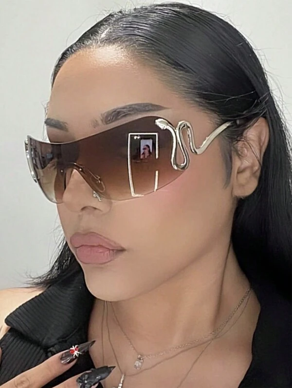 Serpent Shape Rimless Sunglasses, European And American Trendsetting Personality Sun Shades, Y2k Millennium Fashion Sunglasses