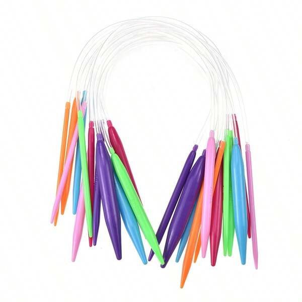 Set Of 12pcs 40cm / 15.7in Household Knitting Needle Color PVC Hose Ring Bar Needle Knitting Tool Accessories Plastic Ring Sweater Needle