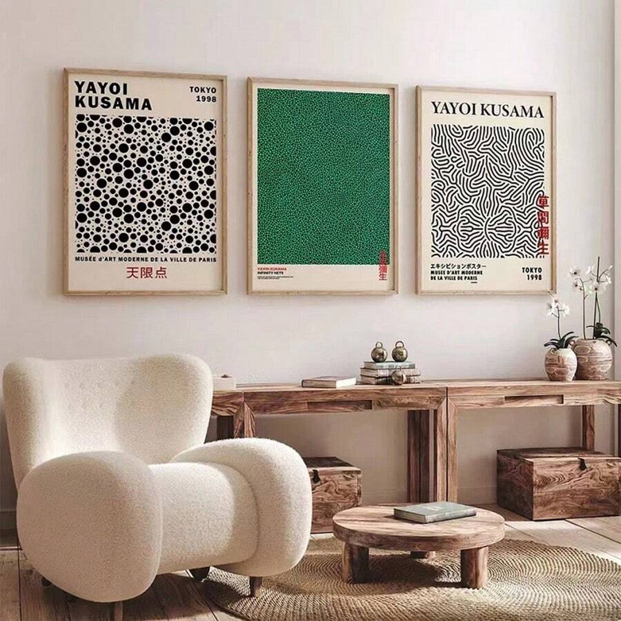 Set Of 3 Abstract Dot & Line Canvas Art Prints, Black & Green Canvas Painting Wall Art Picture For Home Decor
