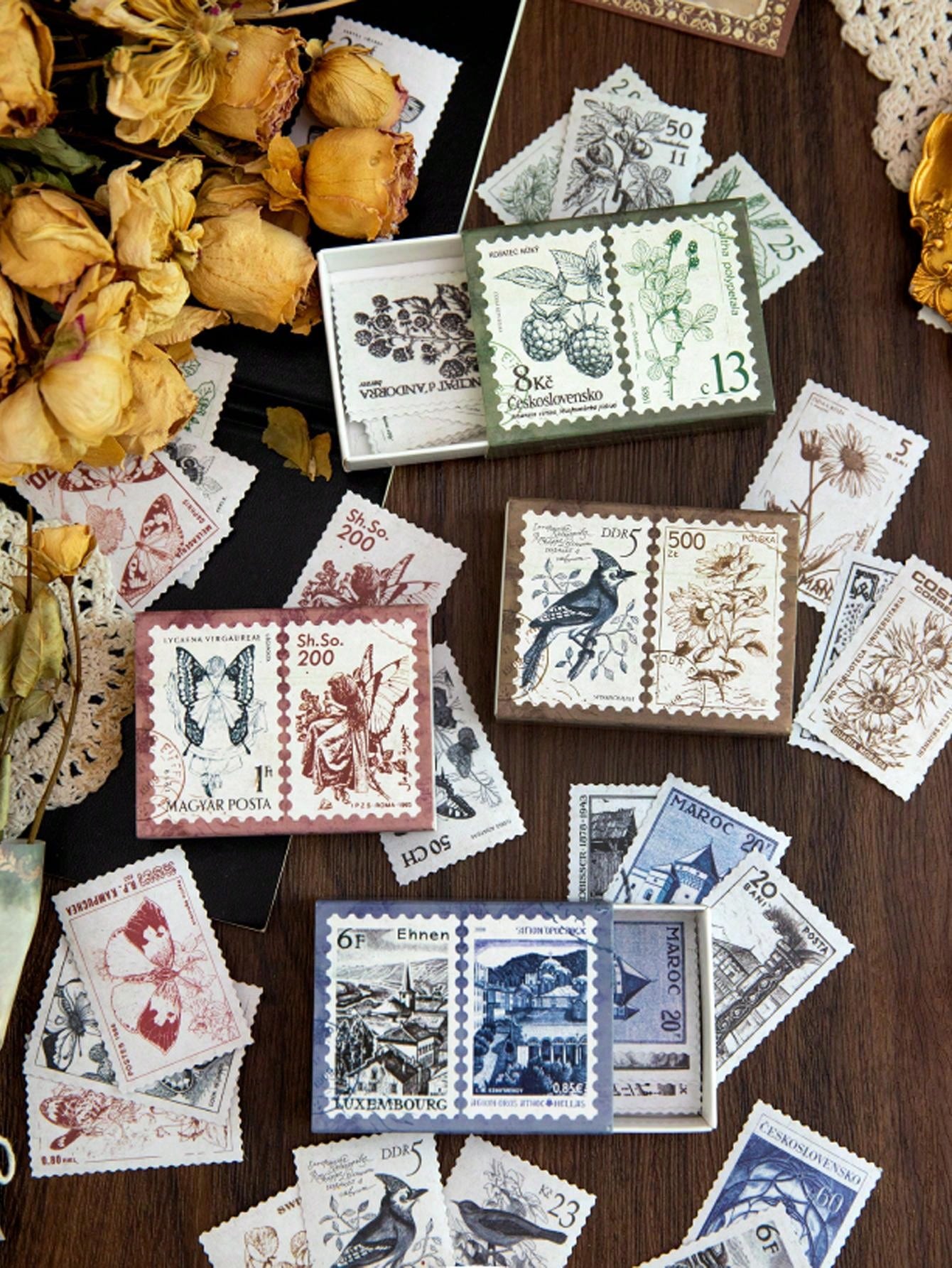 Set Of 30 Romantic Expectation Themed Postage Stamp Stickers