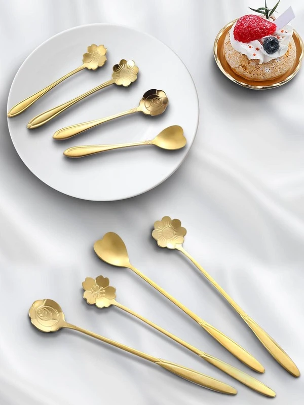 Set Of 4 Stainless Steel Creative Flower Shaped Spoons For Watermelon, Ice Cream, Coffee & Cake, Suitable For Chinese Restaurant, Western Restaurant, Hotel, And Home Kitchen