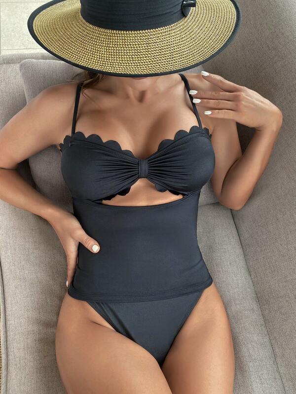 Shell-Trimmed Cutout Camisole Top And Briefs Tankini Swimsuit Set