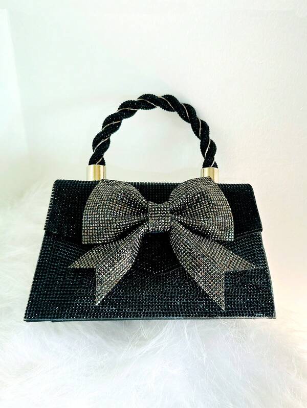 Shiny,Glitter Bling Glamorous,Elegant,Exquisite,Quiet Luxury Glittering Butterfly Knot Rhinestone Evening Bag, Black Dinner Bag,Elegant Rhinestone Rhinestone,Crystal Decor,Faux Pearl For Party Girl,Woman,For Lady,Bride Perfect for Party,Wedding,Prom,Dinner/Banquet Best gift for women