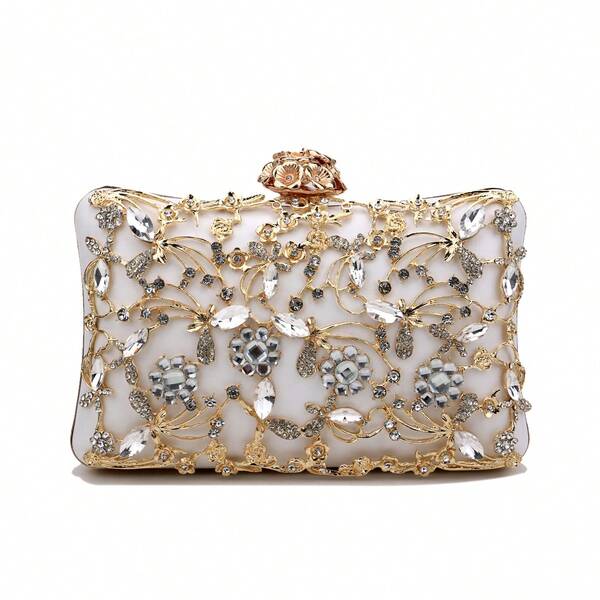 Shiny,Glitter Bling Glamorous,Elegant,Exquisite,Quiet Luxury Rhinestone Embellished Women's Evening Bag Dinner Bag,Elegant Rhinestone Rhinestone,Crystal Decor,Faux Pearl For Party Girl,Woman,For Lady,Bride Perfect for Party,Wedding,Prom,Dinner/Banquet Best gift for women