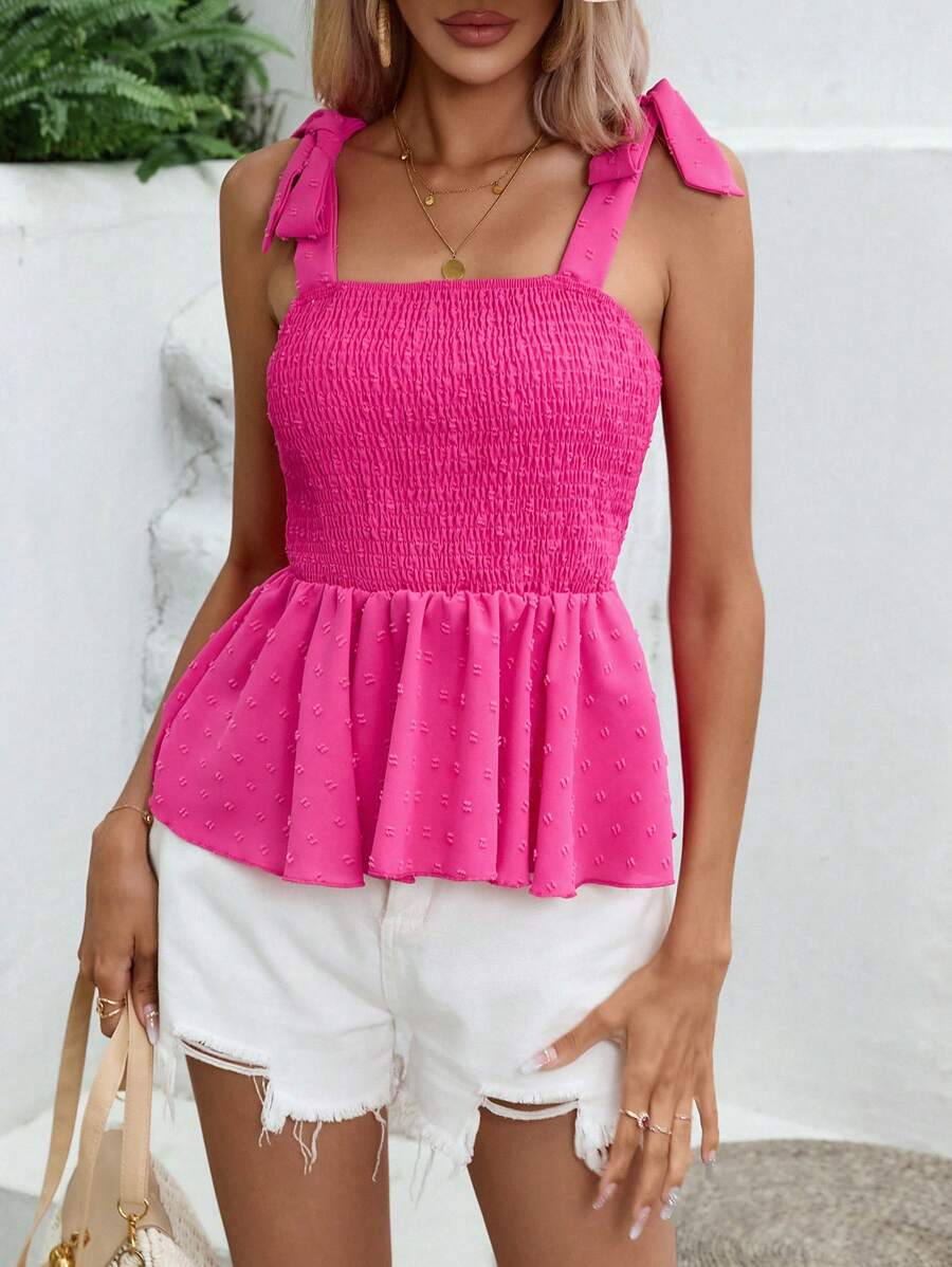 SHEIN VCAY Shirred Tie Shoulder Peplum Cami Top