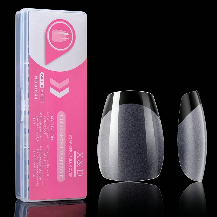 Short Coffin Soft Gel Nail Tips, 240 PCS Pre Buff Full Cover Shaped Nail Extenison Tips Half Matte Gel Nail Tips Acrylic False Nail Tips (Short Trapezoid)