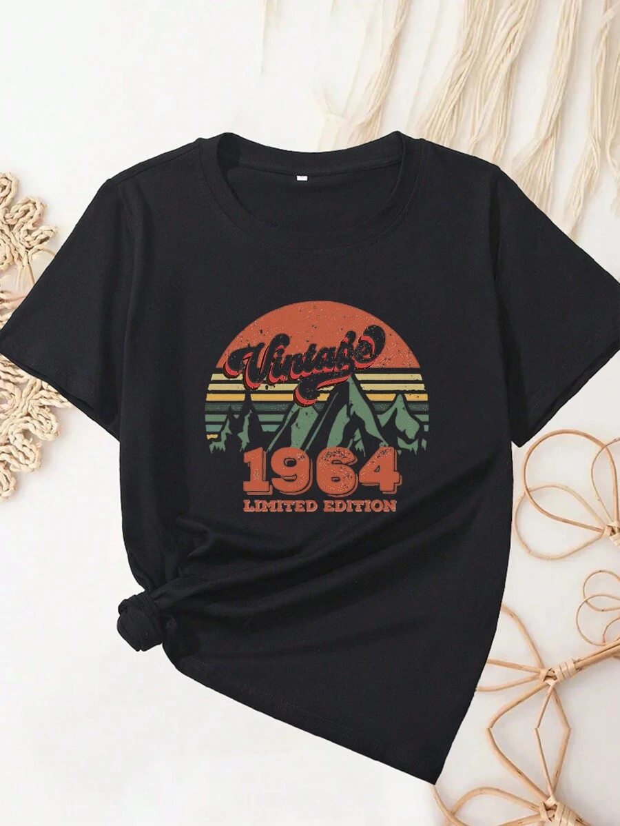 SHEIN LUNE Short Sleeve Women's 1964 Printed T-Shirt For Spring And Summer