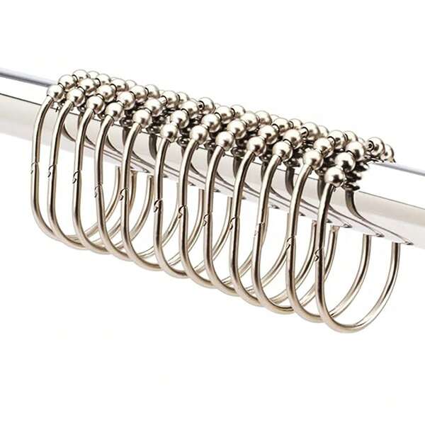 Shower Curtain Rings, Metal Wide Curtain Rings For Bathroom Shower Rods And Window Curtains, Matte Nickel, 12-Pack