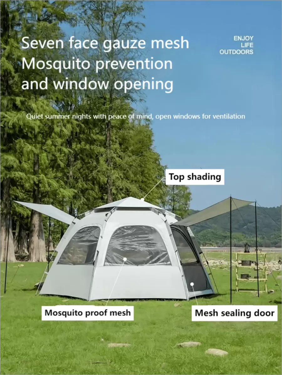 Silver Coated Oxford Cloth Sunproof And Windproof Hexagonal & Spherical Tent With Porch, Automatic And Foldable, Full Set Of Camping Equipment For Outdoor Camping, Picnic And Survival