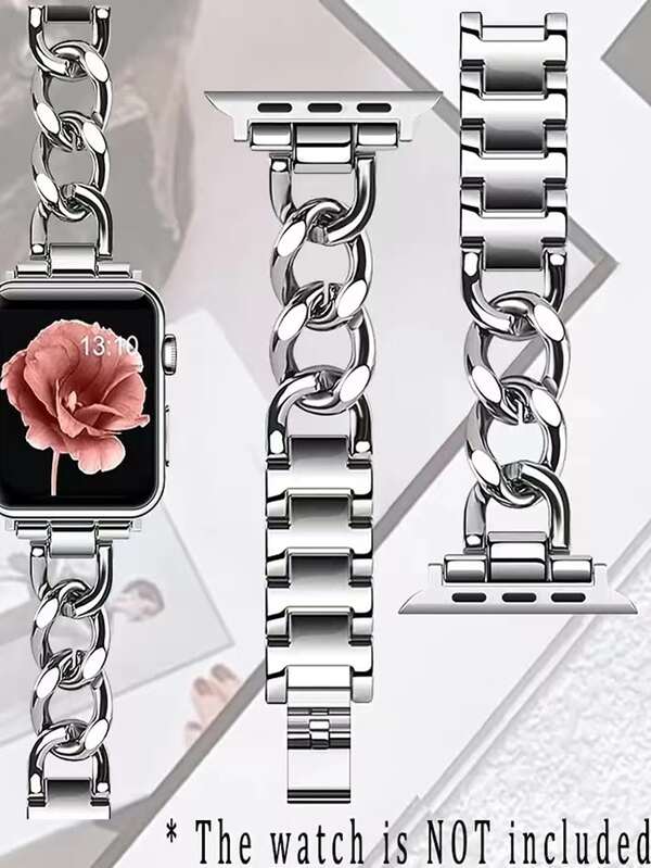Silver Stainless Steel Cowboy Chain Replacement Watch Band Compatible With Apple Watch Series 8/7/6/5/4/3/2/1/Se Sport Band, 41mm/38mm/40mm/42mm/44mm/45mm, For Men Women