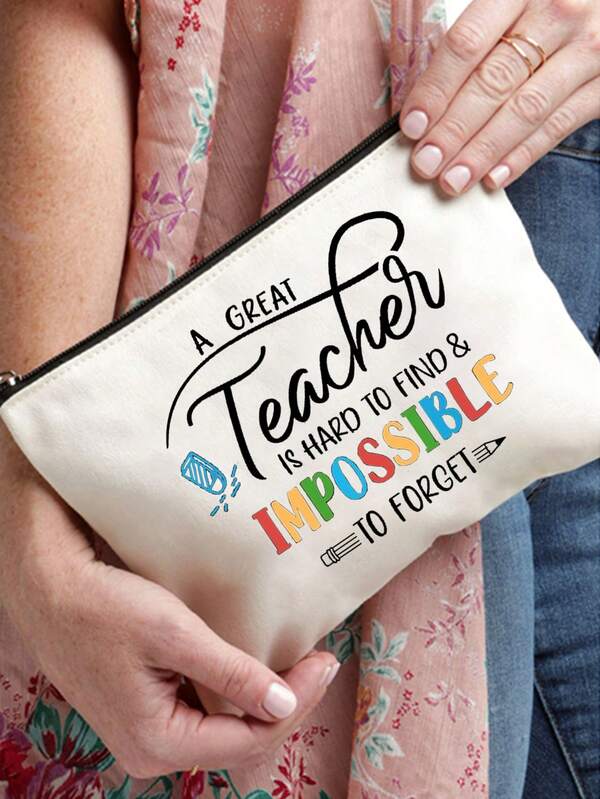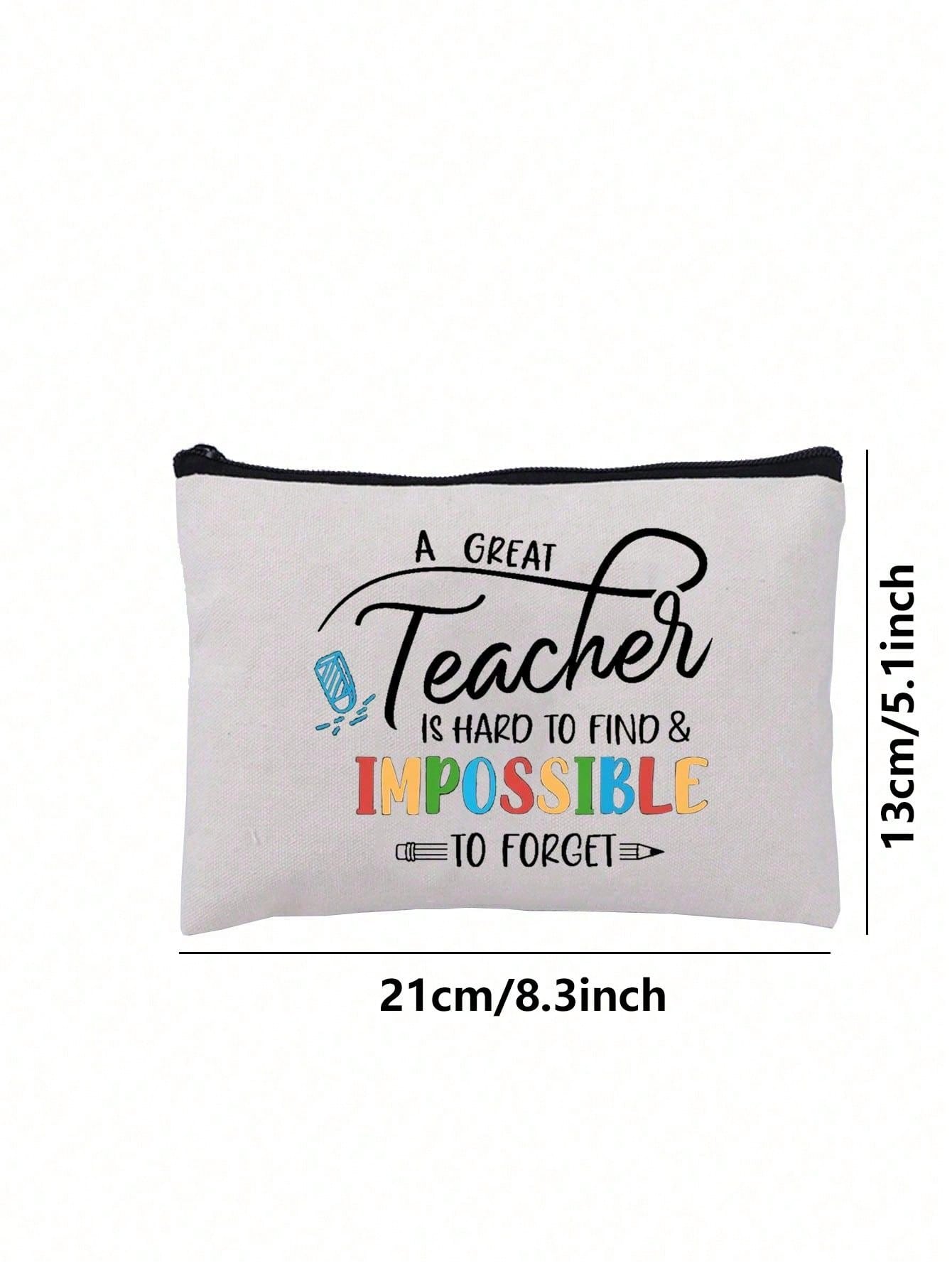Simple Letter Print Cartoon Print Zipper Pouch, Lightweight Carry-On Bag, Versatile Portable Makeup Bag For Teacher, Teacher Appreciation Canvas Storage Bag, Toiletry Bag, Portable Cosmetics Bag, Gifts For Women Make Up Organizer Makeup Storage Cosmetic Bag Wash Bag