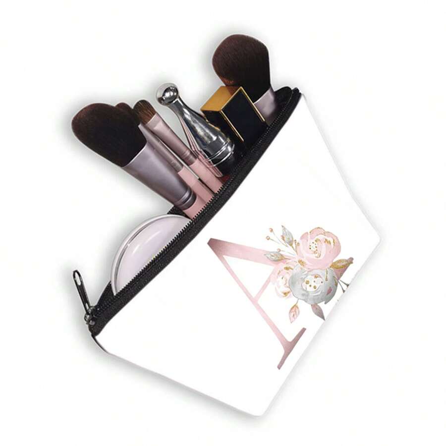 Simple Portable Pattern Cosmetic Bag, Travel Makeup Storage Bag With Zipper, Trendy Toiletry Wash Bag,Letter Printed Clutch Pouch , Pouch Bags