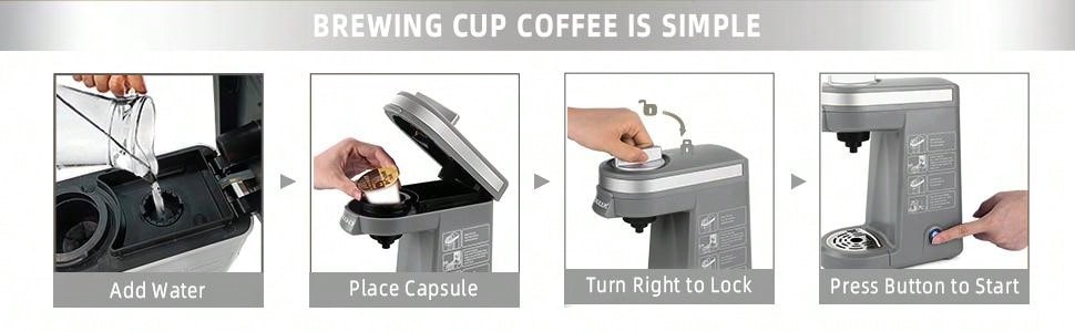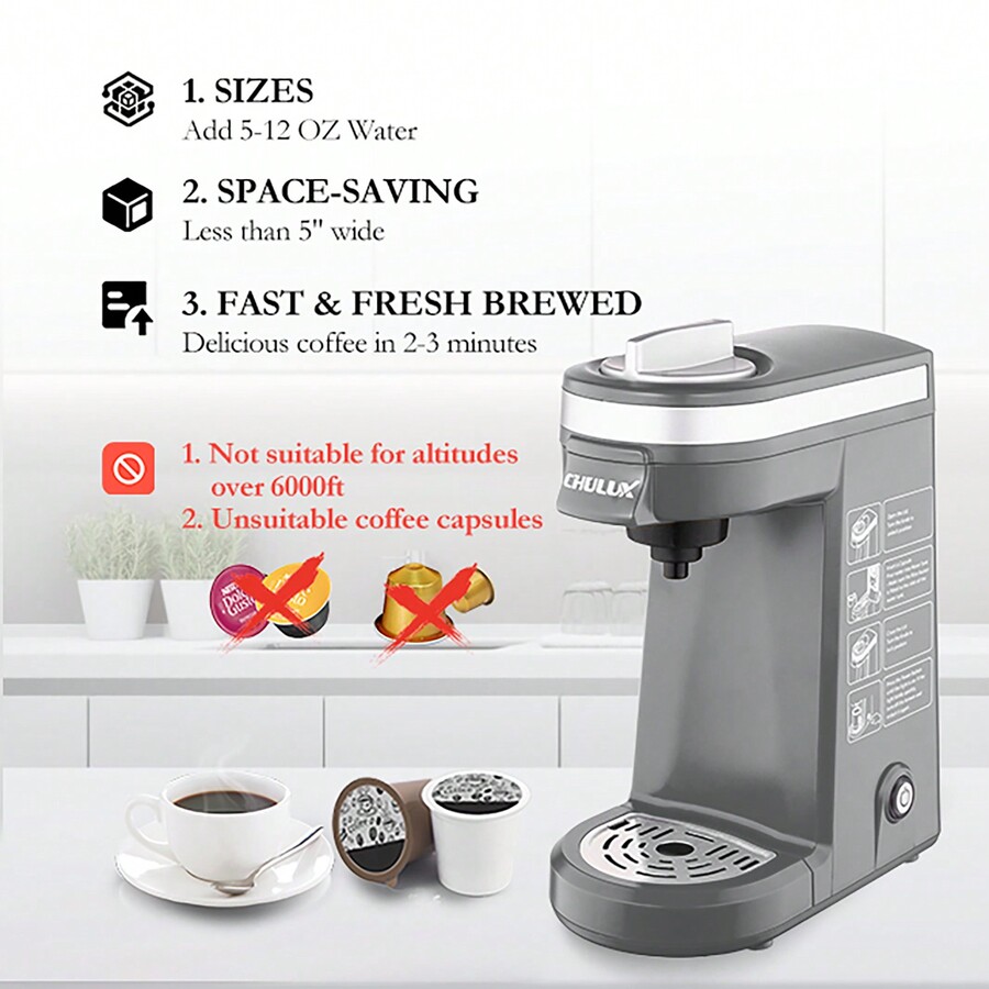 Single Cup Coffee Maker, Upgraded One Cup Quick Brewing Coffee Machine, All-In-One Simple Coffee Brewer, Compatible With K Cup & Ground Coffee & Tea, Mini Coffee Maker Brews In Minutes