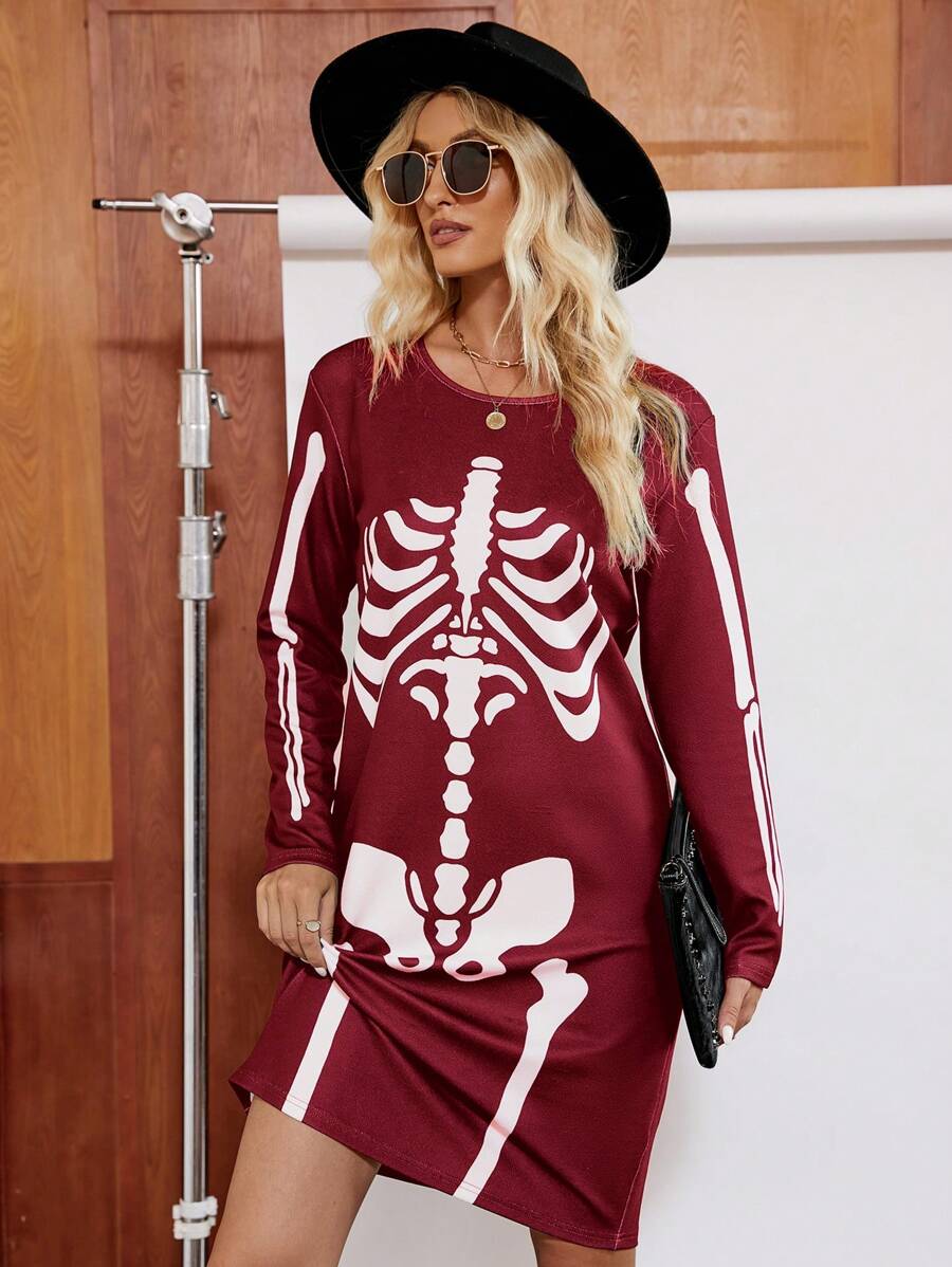SHEIN LUNE Skeleton Print Tee Dress