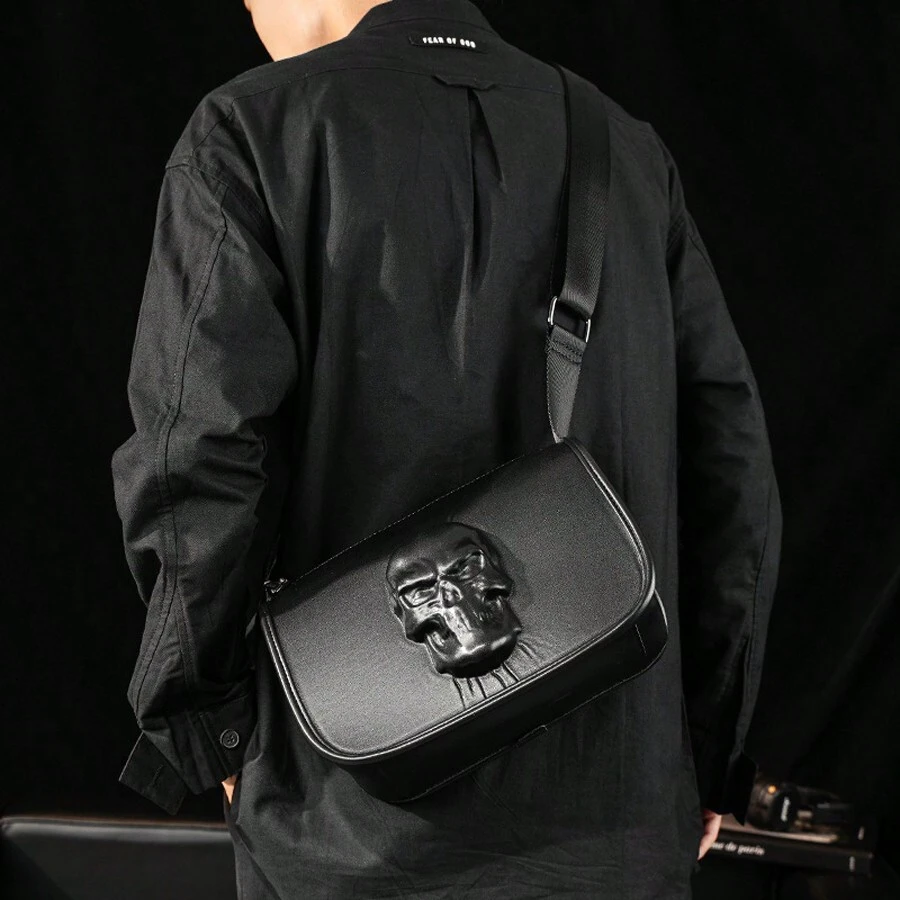 Skull And Ghost Head Crossbody Bag Shoulder Bag Waterproof Multifunctional With Adjustable Strap Holiday Essentials For Travel Vacation Work Office Commute/Commuting PU Leather Minimalist Y2K Casual Gift For Men Men Gifts For Boys
