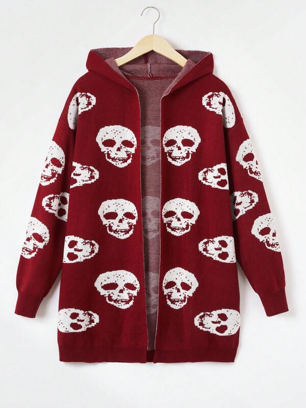SHEIN Coolane Skull Pattern Drop Shoulder Hooded Cardigan