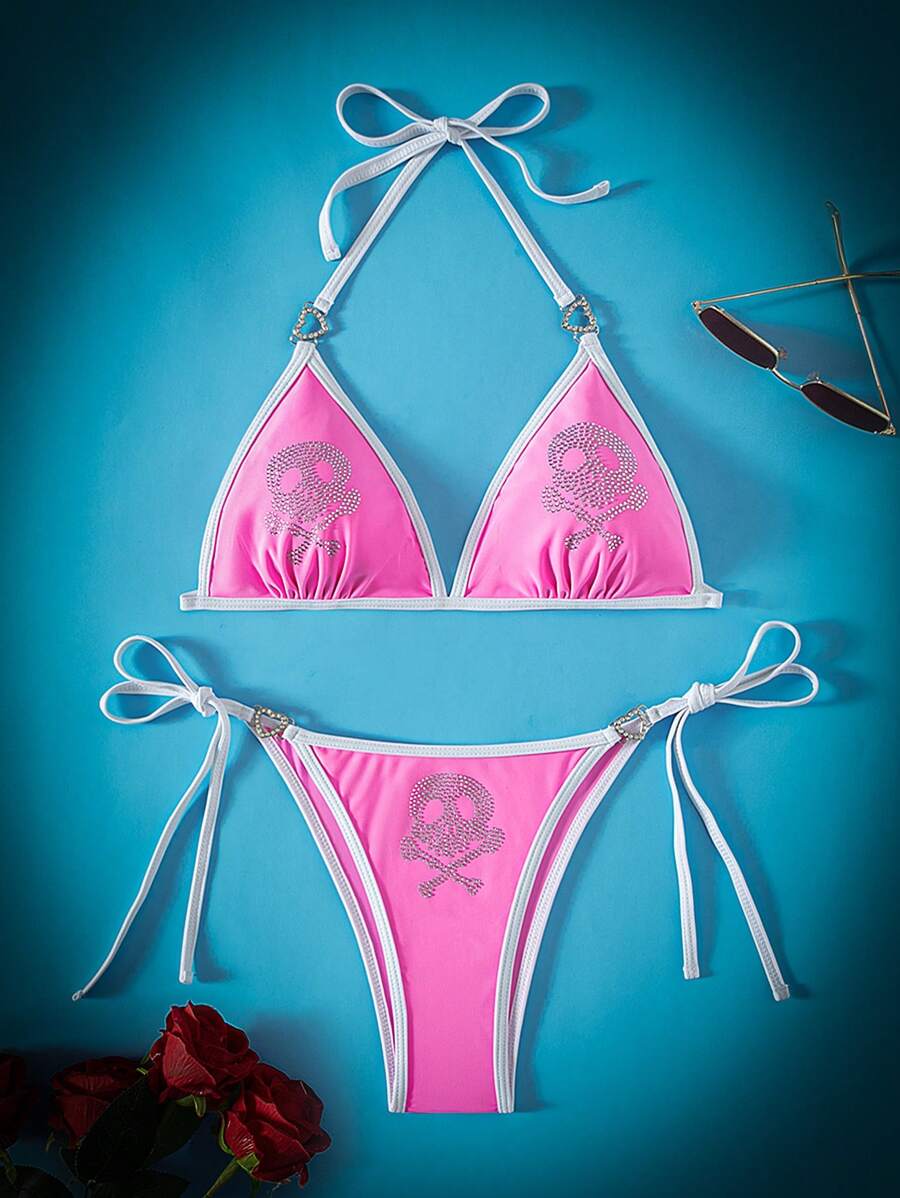 SHEIN Swim Y2GLAM Skull Print Halter Tie Side Bikini Swimsuit