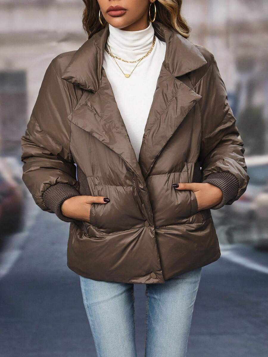 SHEIN LUNE Slant Pocket Button Front Down Coat