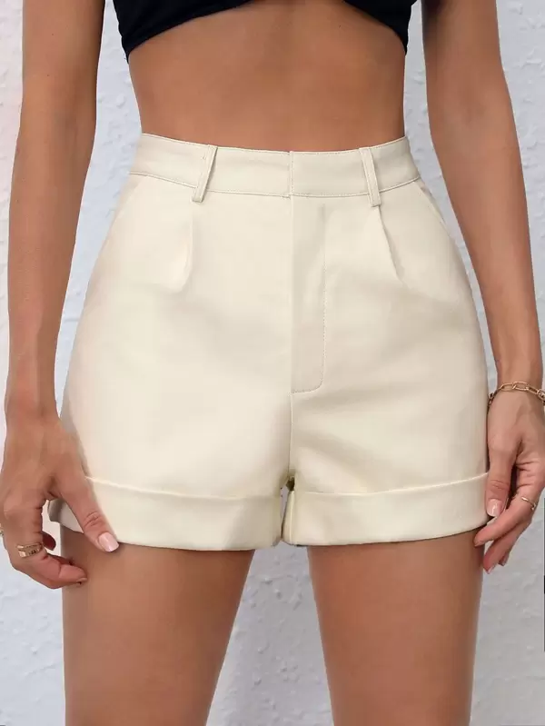 SHEIN PETITE Slant Pocket PU Shorts