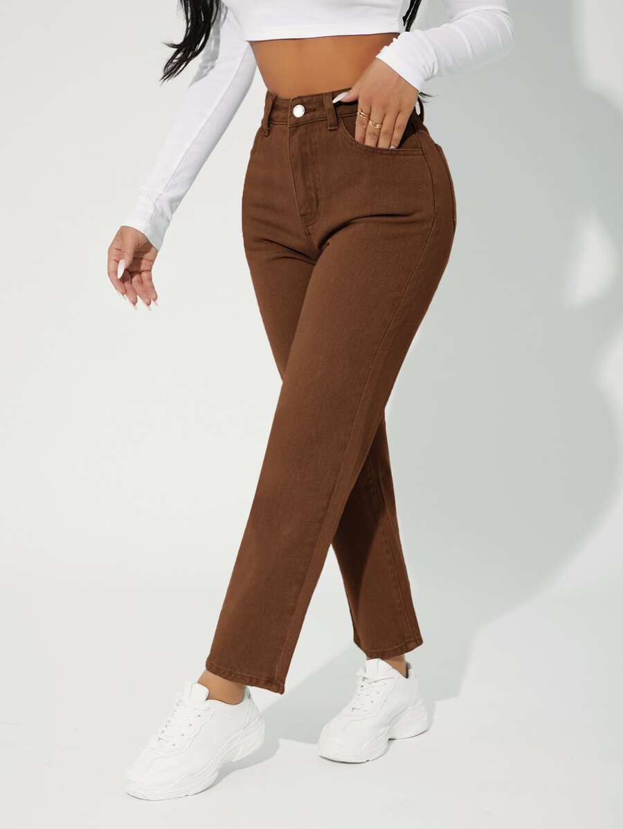 SHEIN PETITE Slant Pocket Straight Leg Jeans