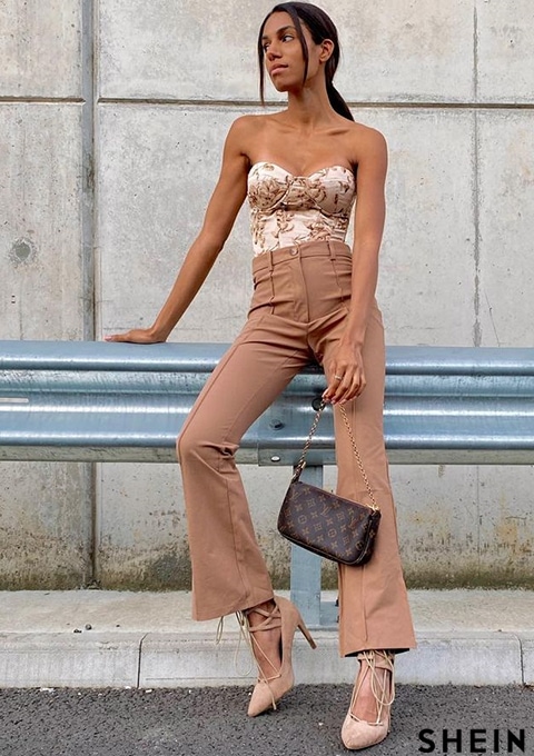 SHEIN BAE Slit Hem Flare Leg Pants