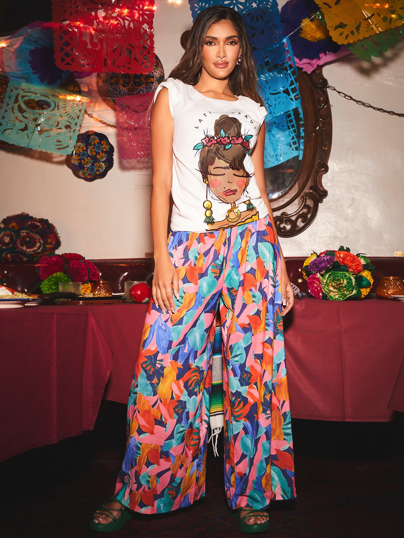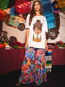 Latina Love Slogan & Figure Graphic Drop Shoulder Oversized Tee
