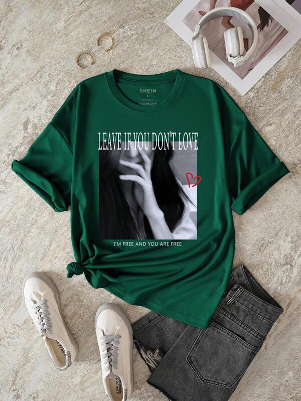 SHEIN Essnce Slogan & Figure Graphic Tee