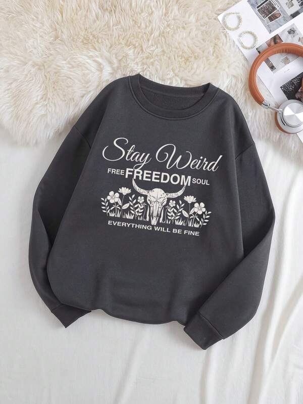 Slogan & Floral Graphic Thermal Lined Sweatshirt
