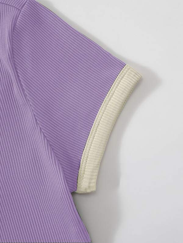 SHEIN Qutie Slogan Graphic Contrast Trim Bodysuit