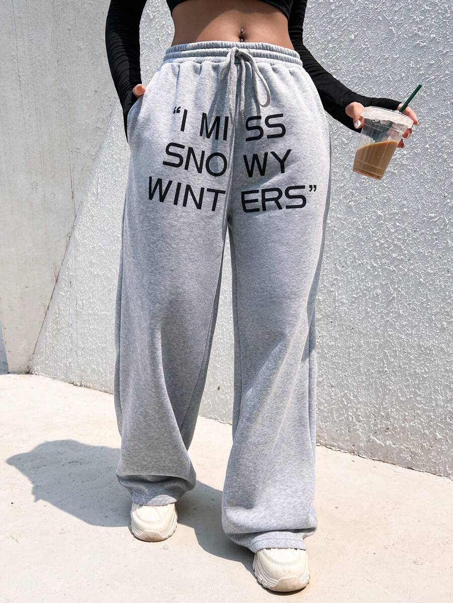 SHEIN Coolane Slogan Graphic Drawstring Waist Sweatpants