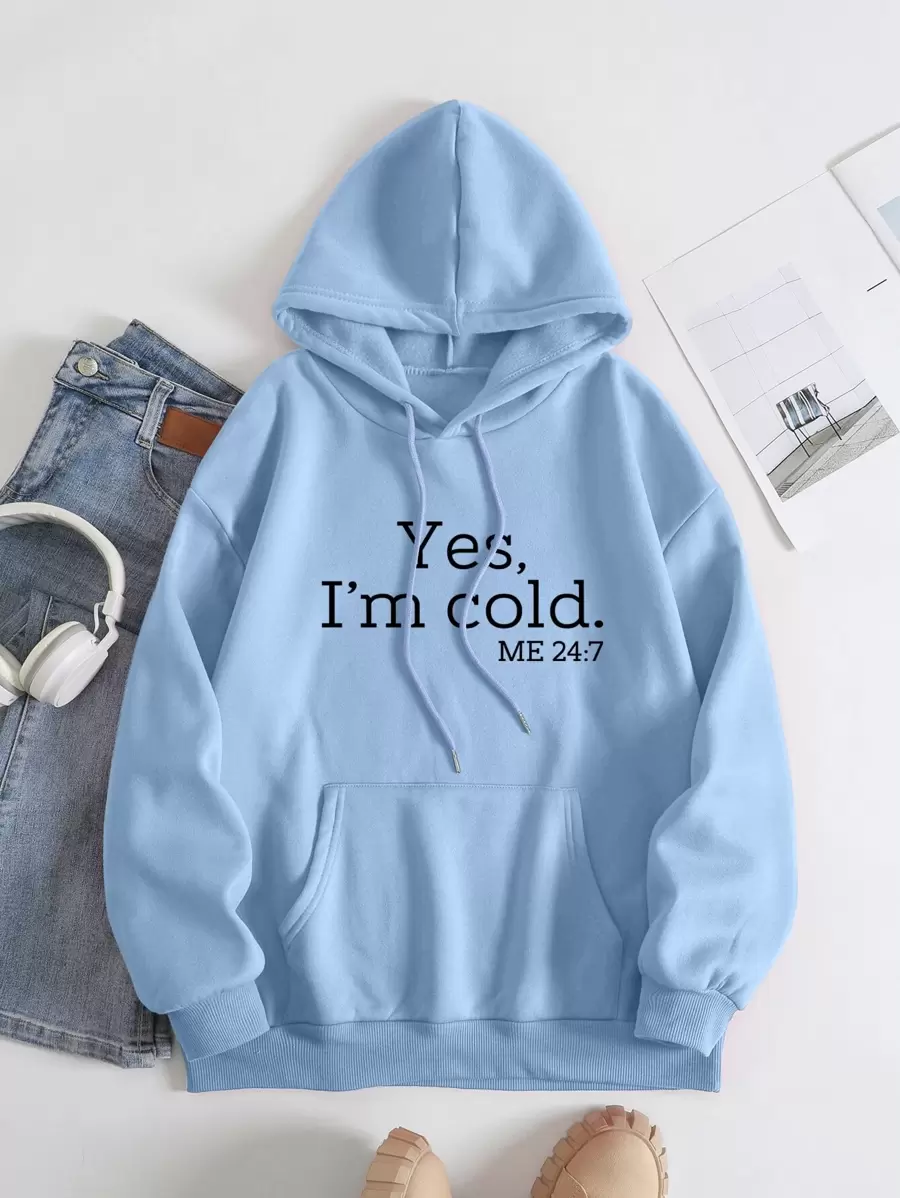 Slogan Graphic Kangaroo Pocket Drawstring Thermal Hoodie