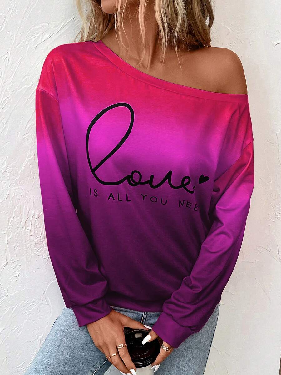 SHEIN LUNE Slogan Graphic Ombre Asymmetrical Neck Drop Shoulder Sweatshirt