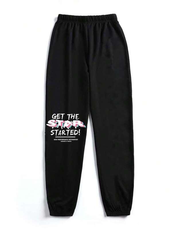 Slogan Printed Elastic Sweatpants